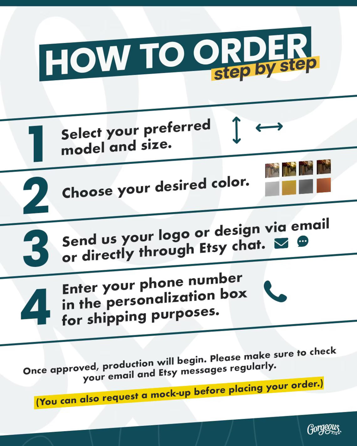 If requested, we can prepare a visual mockup so you can review the look before production begins.